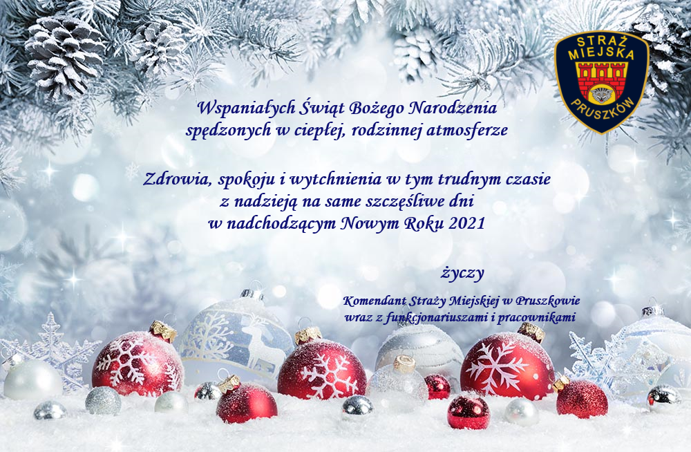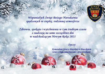 Zdrowych, spokojnych Świąt Bożego Narodzenia utworzone przez adminstrazum1 | gru 23, 2020 | AKTUALNOŚCI, ARCHIWUM Pragniemy złożyć życzenia z okazji świąt Bożego Narodzenia oraz Nowego Roku 2021 wszystkim Mieszkańcom i Gościom naszego miasta Pruszkowa