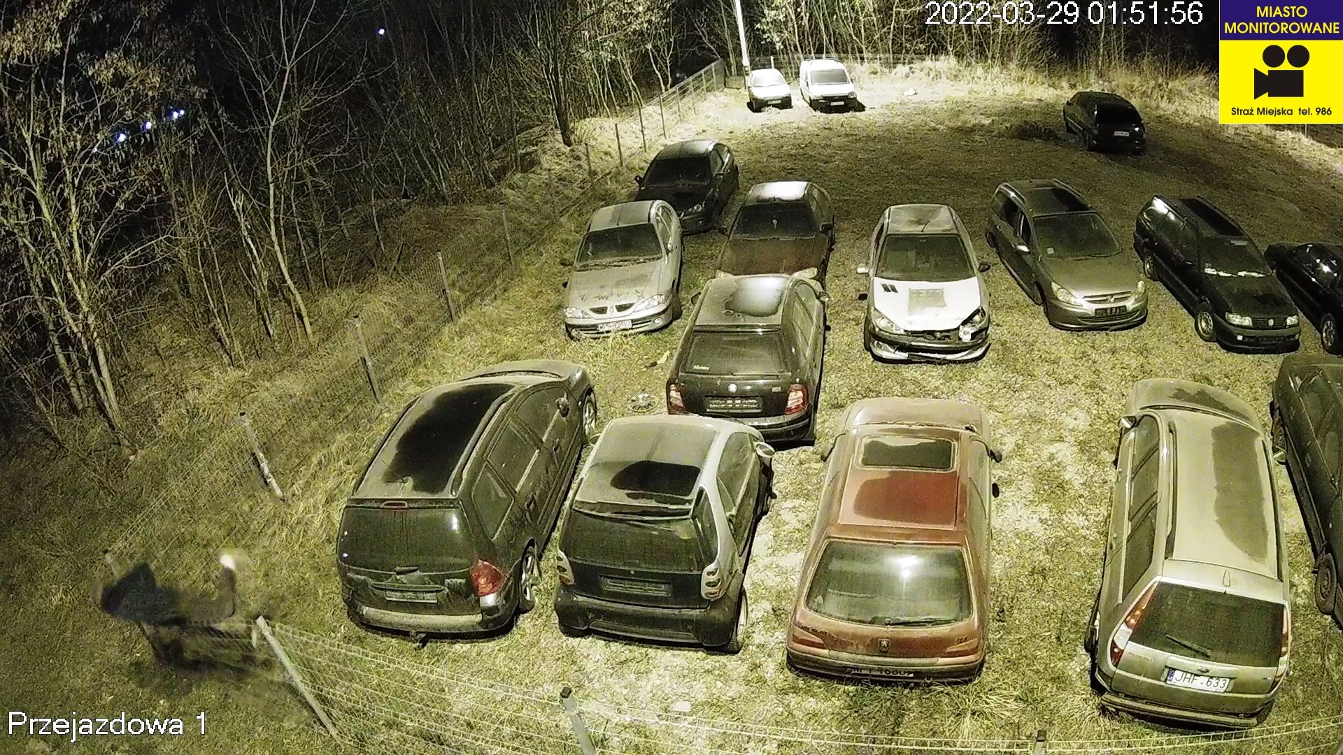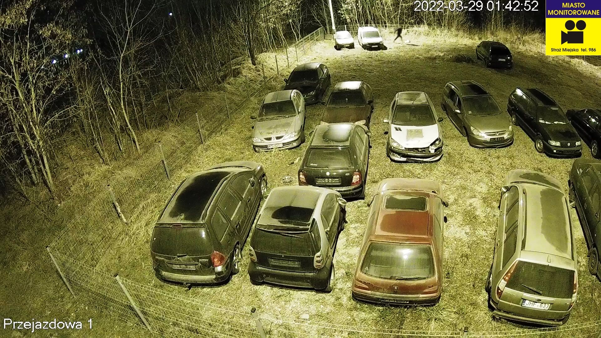 Zajmujące innym mieszkańcom Pruszkowa miejsca parkingowe, nieużytkowane pojazdy lub wręcz porzucone przez ich właścicieli, zgłaszane są do naszej jednostki. Strażnicy, po przeprowadzonych czynnościach, odholowują je na parking dozorowany przy ul. Przejazdowej. Pomimo informacji, że teren parkingu jest monitorowany, a kamery miejskiego systemu są widoczne, nadal nie brakuje amatorów cudzego mienia, którzy decydują się na próby kradzieży wyposażenia zdeponowanych tam aut. Kolejny z nich wpadł w ręce strażników na tzw. gorącym uczynku w nocy 29 marca br. To kolejne ujęcia w tym miejscu, które dzięki kamerom monitoringu i natychmiastowej reakcji, zapobiegły kradzieży mienia.