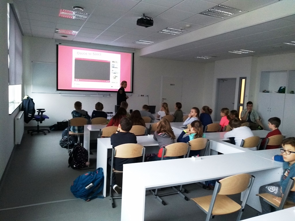 Funkcjonariusze Referatu Profilaktyki prowadzili zajęcia z dziećmi i młodzieżą, którym czas wolny organizowały szkoły, świetlice TPD i PKPS. Na zajęciach omawiano tematykę związaną z zasadami bezpiecznego spędzania czasu podczas ferii. Informowano dzieci, w jaki sposób dostosować ubranie do warunków pogodowych oraz jak bezpiecznie bawić się na śniegu korzystając jednocześnie ze sprzętu zimowego. Przypomniano uczniom także o zasadach bezpiecznego korzystania z internetu. Przede wszystkim poruszono z dziećmi niezwykle ważny temat, jakim jest kontakt z osobą obcą „poznaną w sieci.” Przypomniano najmłodszym i tym trochę starszym dzieciom, by pamiętały o zasadzie „ograniczonego zaufania”, gdyż nie zawsze obcy w sieci jest tym, za kogo się podaje.