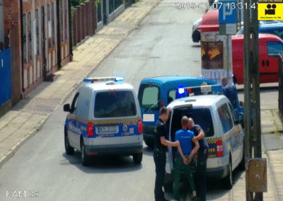 Około godziny 13:25 do stanowiska dowodzenia naszej jednostki, dotarła telefoniczna informacja o kierowcy samochodu dostawczego, który poruszał się ulicami Żbikowa, prawdopodobnie pod wpływem alkoholu. We wskazany przez mieszkańca rejon zostały skierowane patrole, celem dokonania kontroli stanu trzeźwości kierowcy. Kamera miejskiego monitoringu pomogła w lokalizacji opisywanego w zgłoszeniu samochodu. Renault, został namierzony przez funkcjonariuszy w rejonie ulicy Pańskiej.