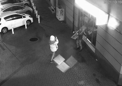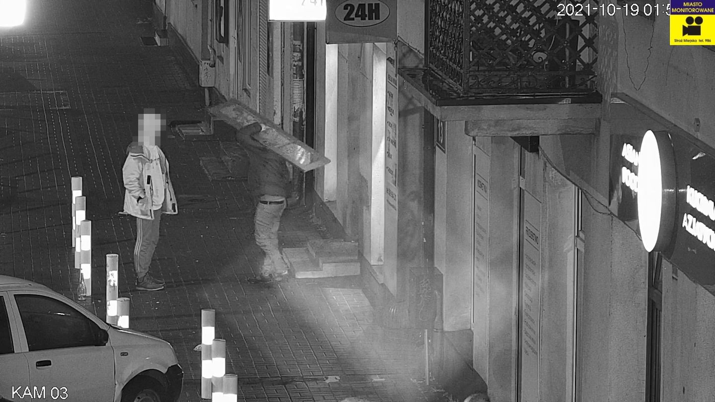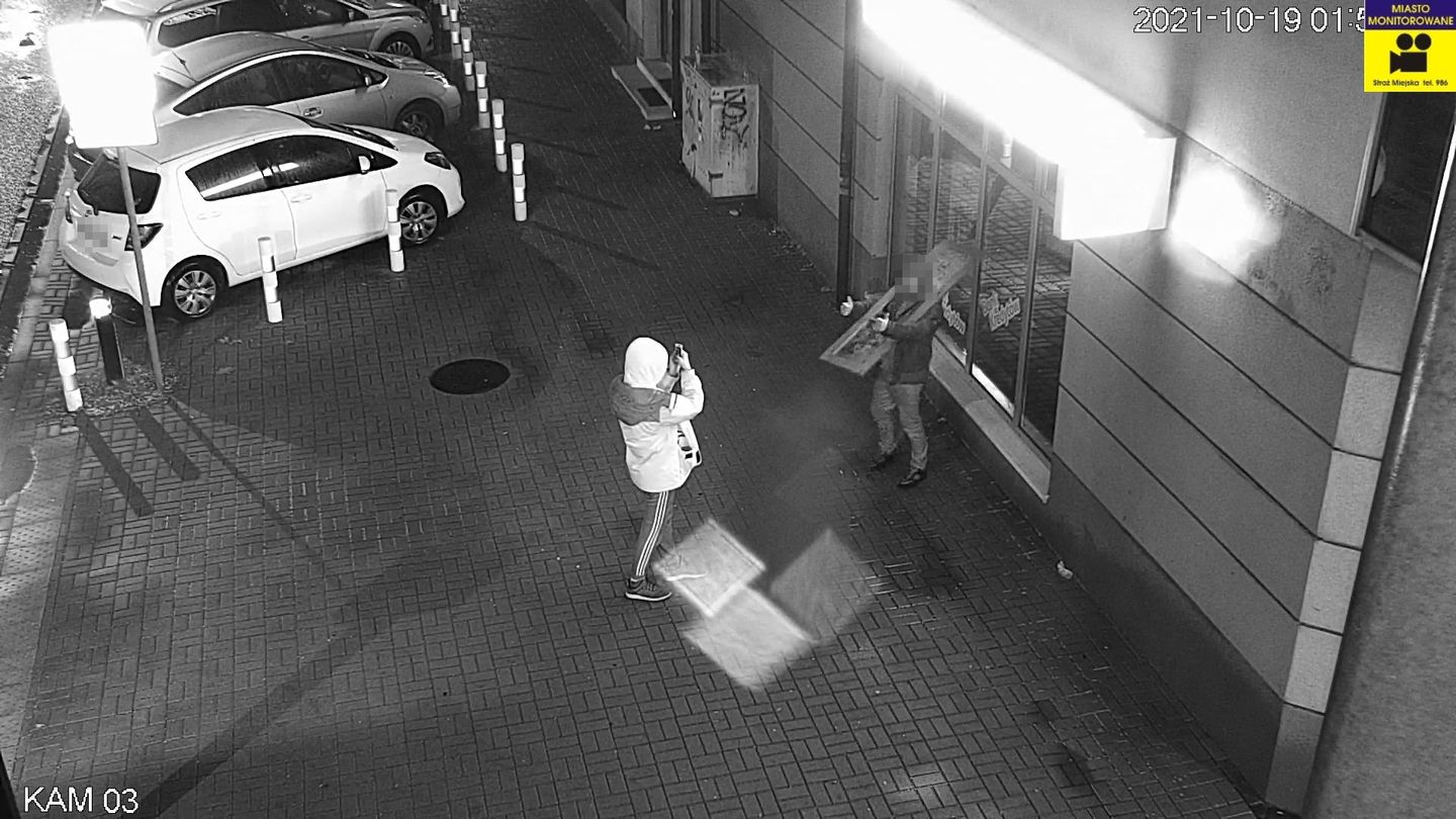 Dwóch sprawców dewastacji przemieszczało się ulicami miasta, a kamery śledziły trasę ich przemieszczania się. Na miejsce niezwłocznie udał się zadysponowany patrol interwencyjny. Strażnicy, tuż przed godziną 2 w nocy, na ulicy Kraszewskiego, dokonali ujęcia dwóch młodych mężczyzn, którzy zostali wskazani przez dyżurnego, jako sprawcy tej dewastacji.
