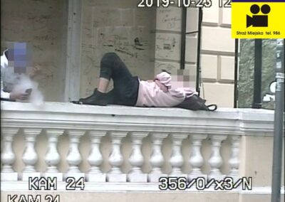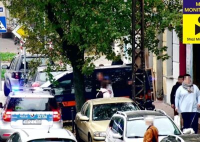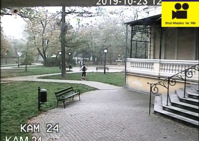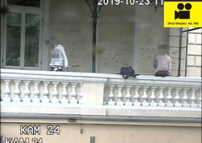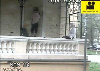 Operator poinformował o tym fakcie patrol interwencyjny, który niezwłocznie udał się w rejon Parku Kościuszki, aby zapobiec dalszej dewastacji mienia. Mężczyźni, zaraz po dokonaniu tego czynu, oddalili się w kierunku ulicy Niecałej. Po kilku minutach zostali ponownie zlokalizowani przez kamery monitoringu, a ich droga oddalania się z miejsca była cały czas monitorowana.