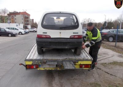 Od początku roku wszczęto czynności wyjaśniające, w związku z ujawnieniem na terenie miasta 38 pojazdów pozostawionych bez tablic rejestracyjnych lub pojazdów, których stan wskazywał, że nie są użytkowane. Podejmując czynności wyjaśniające, staramy się dotrzeć do właściciela lub użytkownika pojazdu, gdyż obowiązek usunięcia i wyrejestrowania wraków pojazdów lub przywrócenia ich do stanu używalności spoczywa właśnie na ich właścicielu.