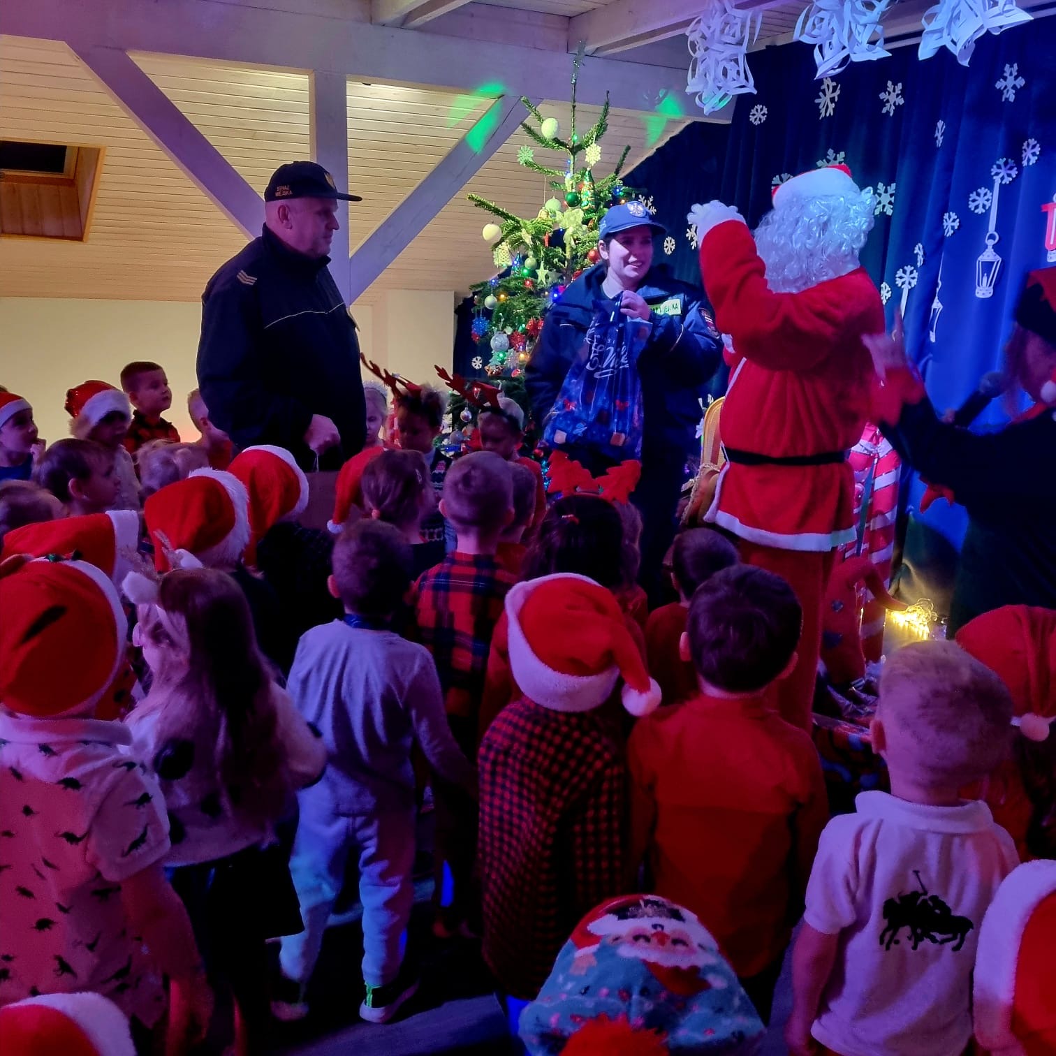 Oprócz wspólnego śpiewania kolęd, przedszkolaki zapoznają są z podstawowymi zagrożeniami charakterystycznymi dla okresu zimowego i zasadami zachowania bezpieczeństwa obowiązującymi w tym szczególnym okresie.