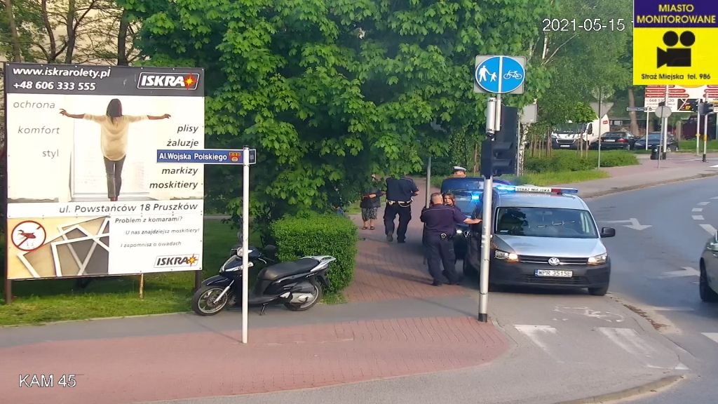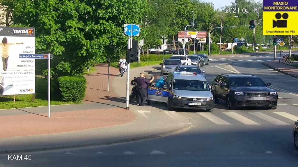 Drugiego z nietrzeźwych, udało się ująć i przekazać policji, dzięki obserwacji rejonu objętego kamerami monitoringu miejskiego. W nocy 15/16.05.br., dyżurny operator monitoringu zauważył samochód marki FORD, którego kierowca podejrzanie manewrował pojazdem na ulicy Chopina. Jego dalsza droga ulicami Pruszkowa była rejestrowana przez operatora. Kiedy, około godziny 2:10, kamera zarejestrowała ten sam pojazd, który dojechał do stacji paliw na ul. Wojska Polskiego, a jego kierowca wysiadł z samochodu zataczając się, operator wysłał niezwłocznie w to miejsce patrol pruszkowskich strażników.