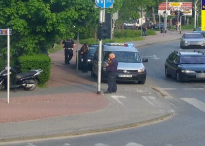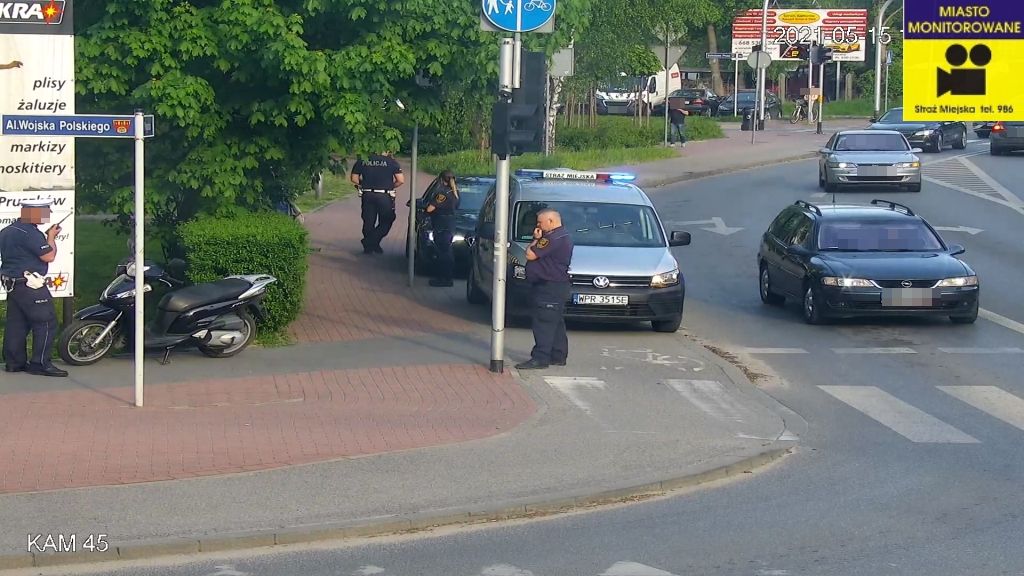 Podczas dalszej obserwacji, kamery zarejestrowały, jak się okazało 46-letniego mieszkańca Pruszkowa, który dokonał wraz z pasażerką zakupu alkoholu w na stacji paliw i odjechał w kierunku osiedla Staszica. Po kilku minutach strażnicy, dokonali ujęcia nietrzeźwego kierującego, na ulicy Działkowej, a na miejsce wezwano patrol policji. W trakcie przeprowadzanych czynności, ujawniono zawartość prawie 3 ‰ alkoholu w wydychanym powietrzu przez kierowce Forda. Ponadto, posiadał on od 2015 roku, wydany sądownie dożywotni zakaz prowadzenia pojazdów mechanicznych. „Kierujący” Fordem również został zatrzymany przez policjantów i będzie odpowiadał przed sądem za swoje czyny.