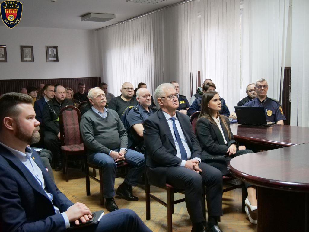 W odprawie uczestniczyli strażnicy, jak i zaproszeni goście, w tym Starosta Pruszkowski Pan Krzysztof Rymuza, Prezydent Miasta Pruszkowa Pan Paweł Makuch wraz z zastępcami Panią Beatą Czyżewską i Panem Konradem Sipierą oraz Sekretarz Miasta Panią Karoliną Sorbian-Jamiołkowską. Wśród zaproszonych, mieliśmy przyjemność gościć przedstawicieli służb Komendy Powiatowej Policji oraz Państwowej Powiatowej Straży Pożarnej. Nie zabrakło również naczelników wydziałów merytorycznych urzędu, z którymi na co dzień współpracujemy, podczas realizacji zadań na rzecz bezpieczeństwa i porządku.
