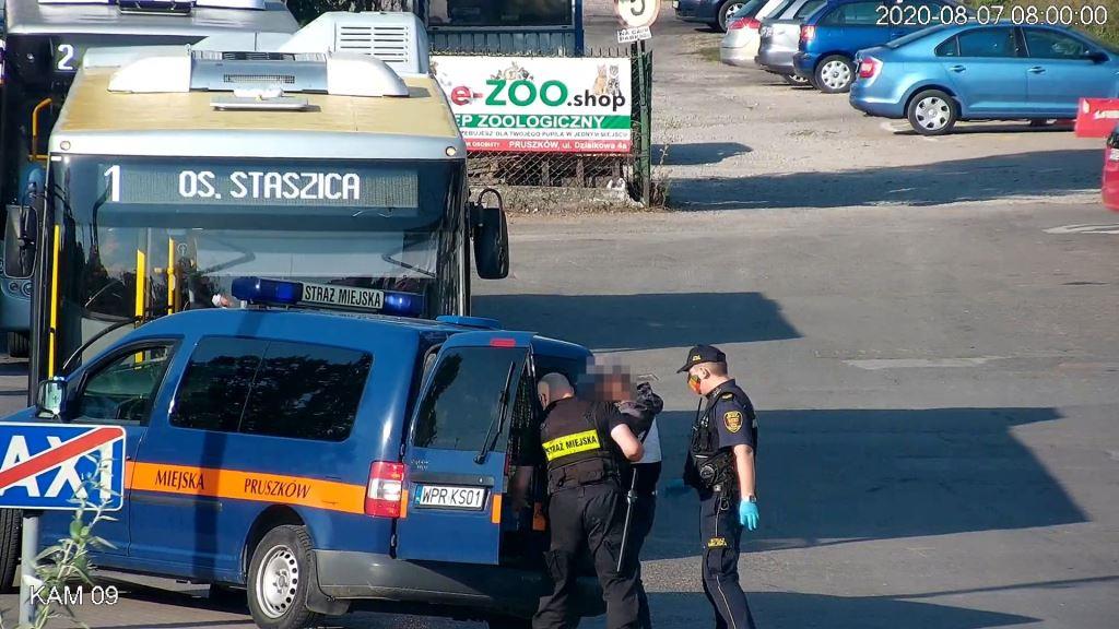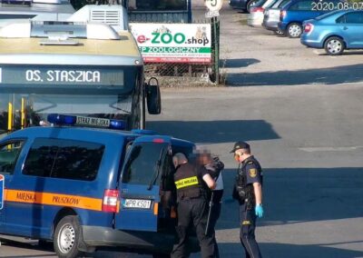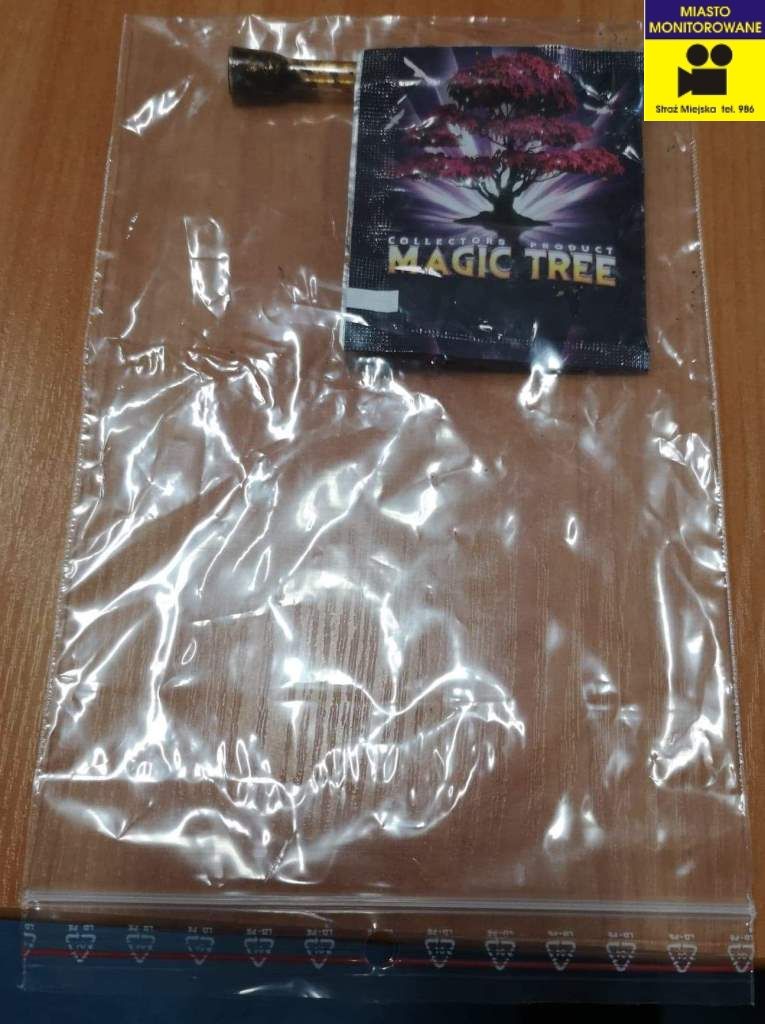 Dyżurny, natychmiast skierował patrol interwencyjny oraz skierował kamerę monitoringu miejskiego w miejsce przystanku autobusu komunikacji miejskiej przy Al. Wojska Polskiego. Już po chwili od przyjazdu autobusu, strażnicy z jego środka wyprowadzili 26-letniego mieszkańca Kuklówki. Podczas jego kontroli rzeczy, okazało się, że posiada on przy sobie dopalacze. Przyznał się on także do ich wcześniejszego zażycia.