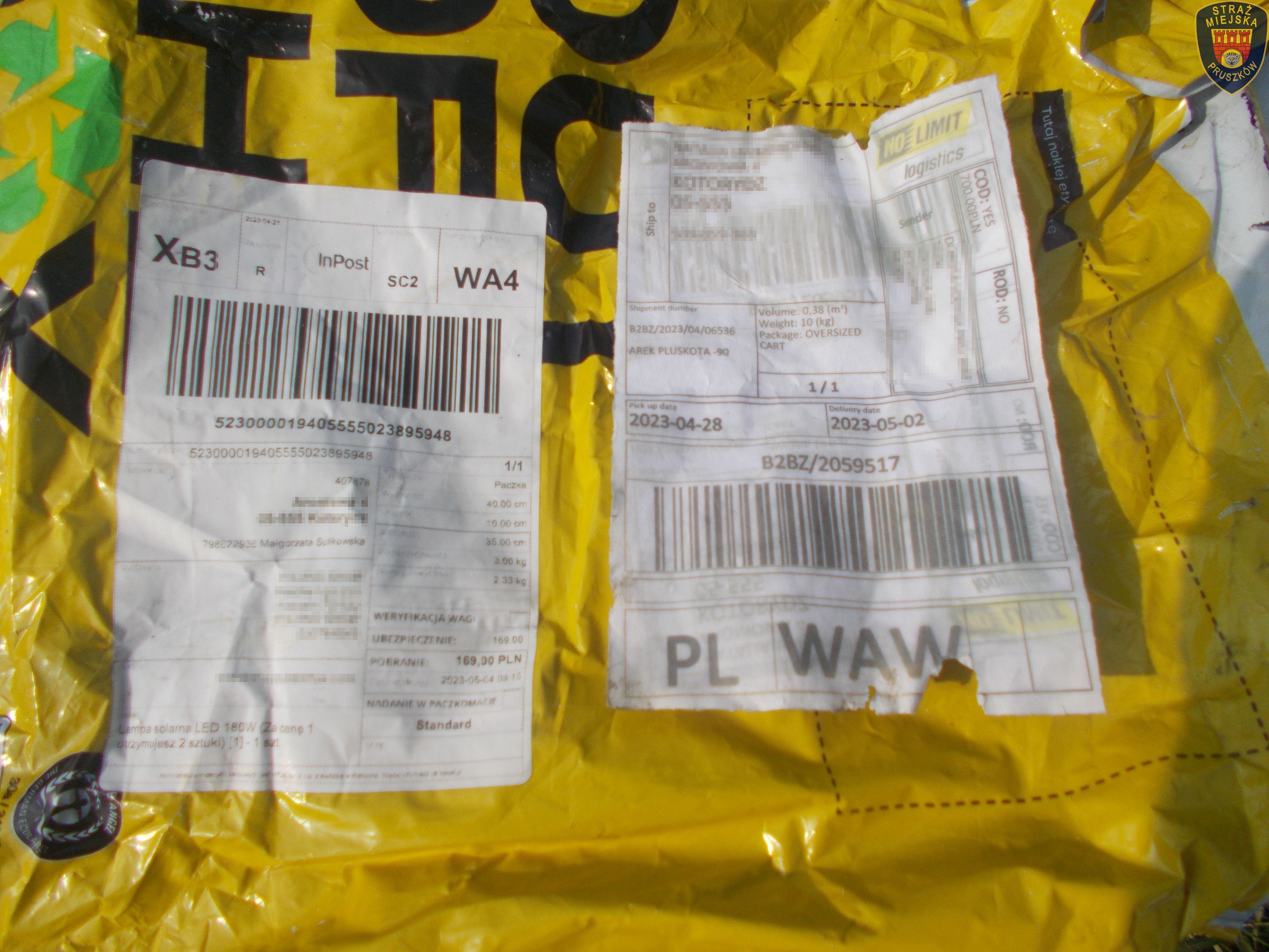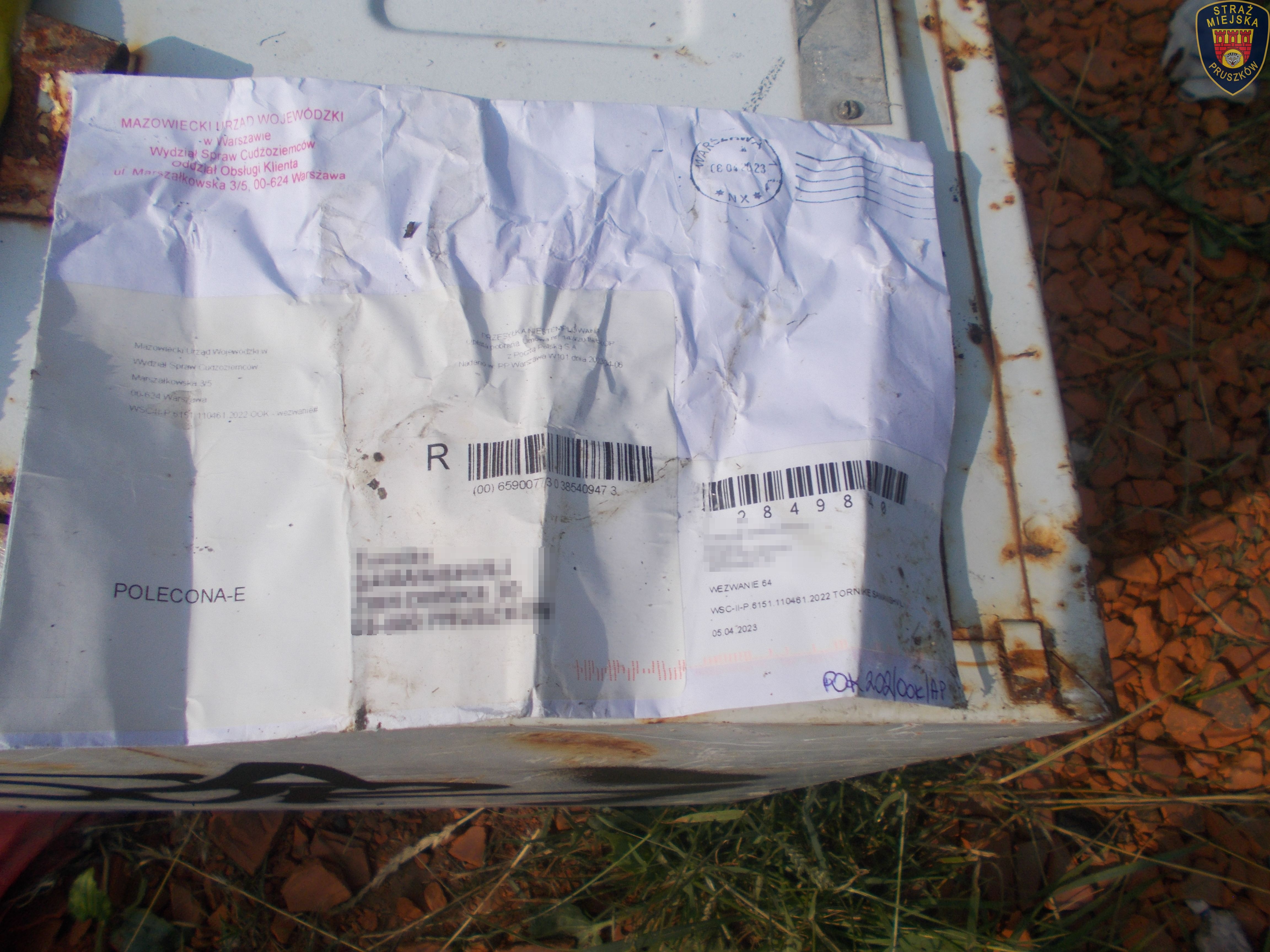 Strażnicy wykonali dokumentację zdjęciową oraz przystąpili do czynności, które mogłyby doprowadzić do ustalenia sprawcy zaśmiecenia. Wśród nich, ujawniono także rzeczy zawierające dane osobowe i adresowe z terenu Pruszkowa i okolic. Następnie udano się pod ujawniony adres, celem przeprowadzenia rozmowy z mieszkańcami posesji.