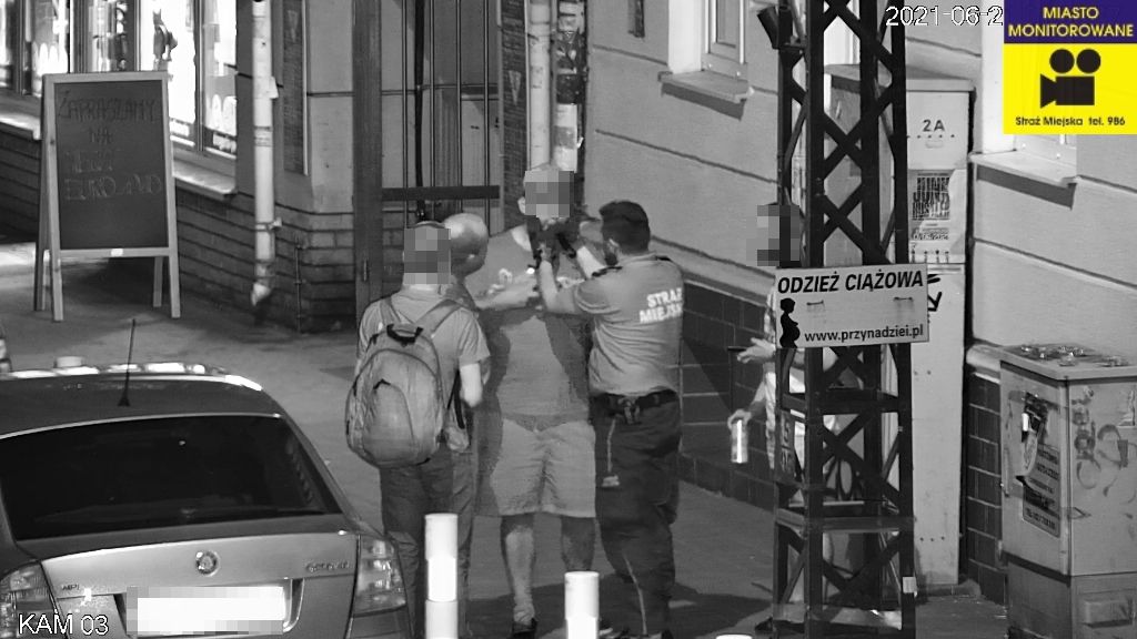Ponadto kamera monitoringu zarejestrowała (w dn. 20/21.06.br. ok. g. 1:50 ul. Kraszewskiego) dwóch sprawców zakłócenia porządku publicznego, spożywania alkoholu oraz naruszenia przepisów ustawy o przeciwdziałaniu narkomanii, za posiadanie środka odurzającego grozi kara do 3 lat pozbawienia wolności.