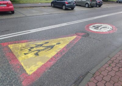 Przy kilku skontrolowanych szkołach stwierdzono wytarcie oznakowania poziomego, wynikające ze zwykłego użytkowania jezdni. Wszystkie stwierdzone nieprawidłowości zostały przekazane do właściwych zarządców dróg w celu niezwłocznego ich usunięcia.