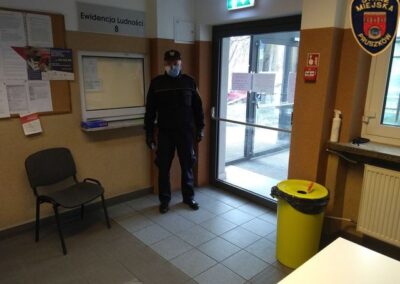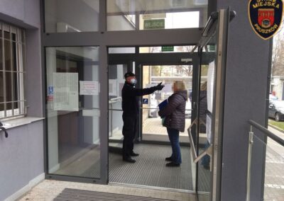 Nasza służba w obecnej chwili, skupia się nad zapewnieniem bezpieczeństwa Mieszkańcom, informacji o zagrożeniach, a także na pomocy i organizowaniu ograniczonej ale bezpiecznej pracy miejskiego magistratu. Zapewniamy bezpieczeństwo zarówno tym, którzy przybywają w charakterze interesantów, jak i samym pracownikom urzędu.