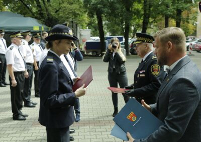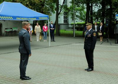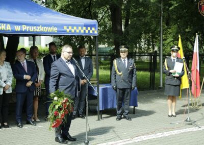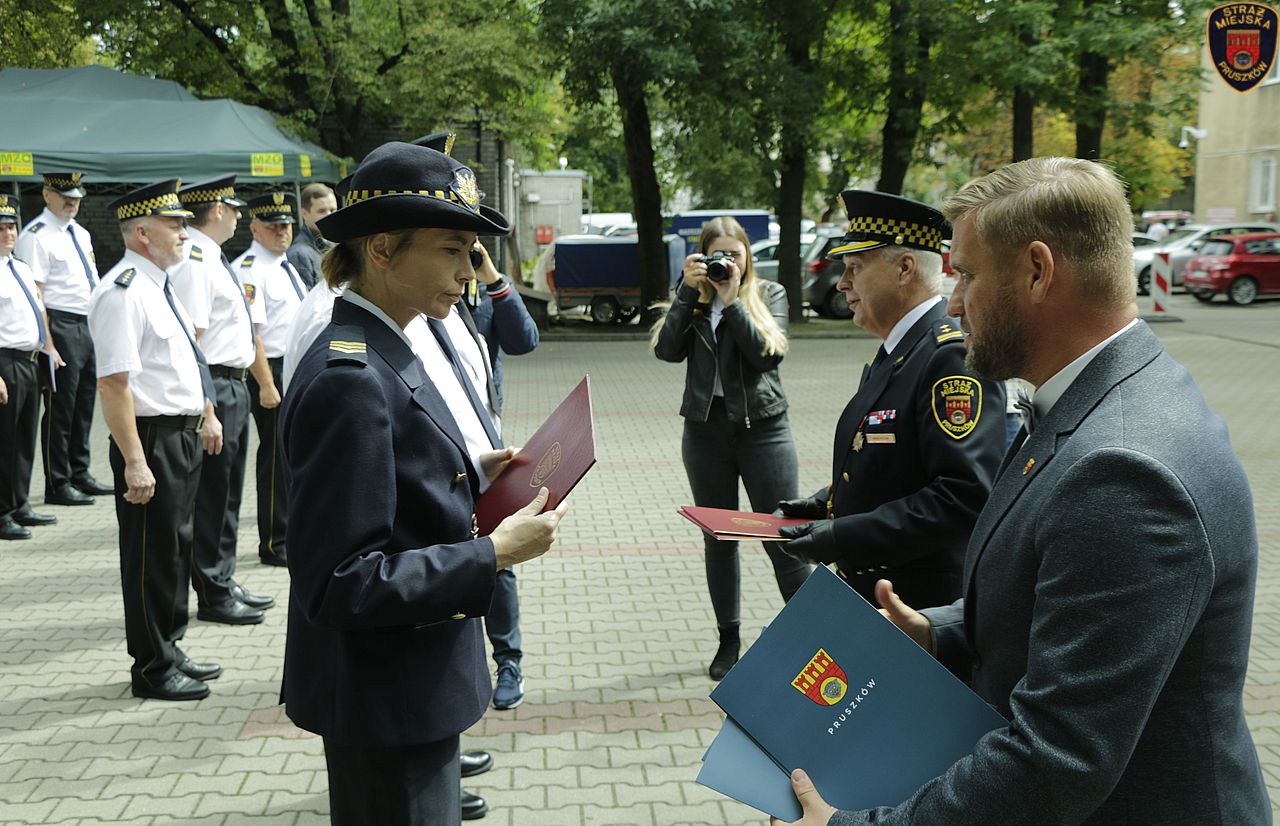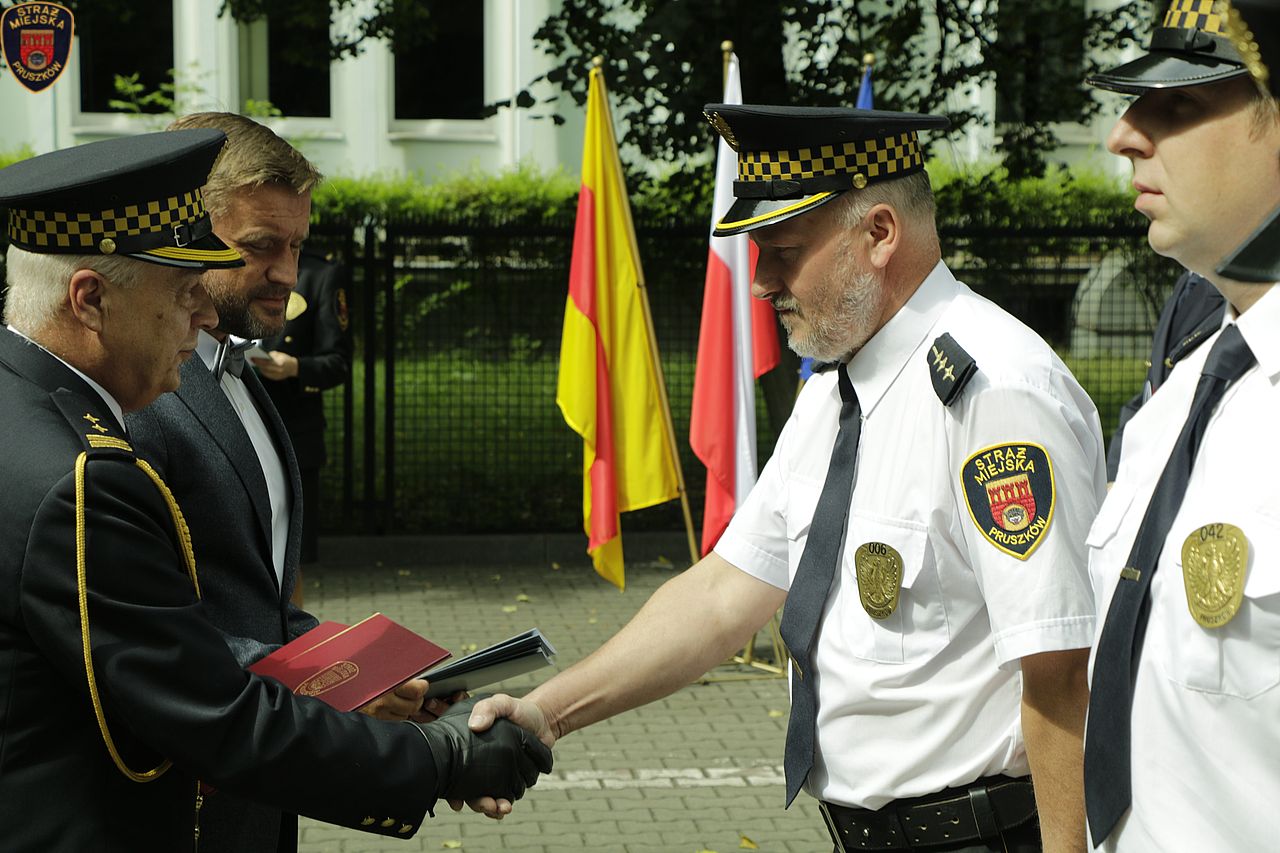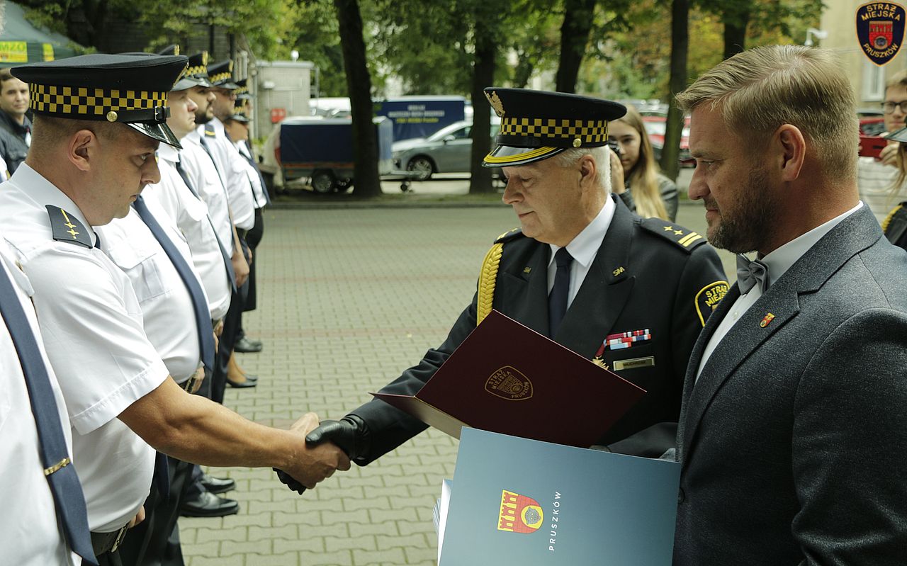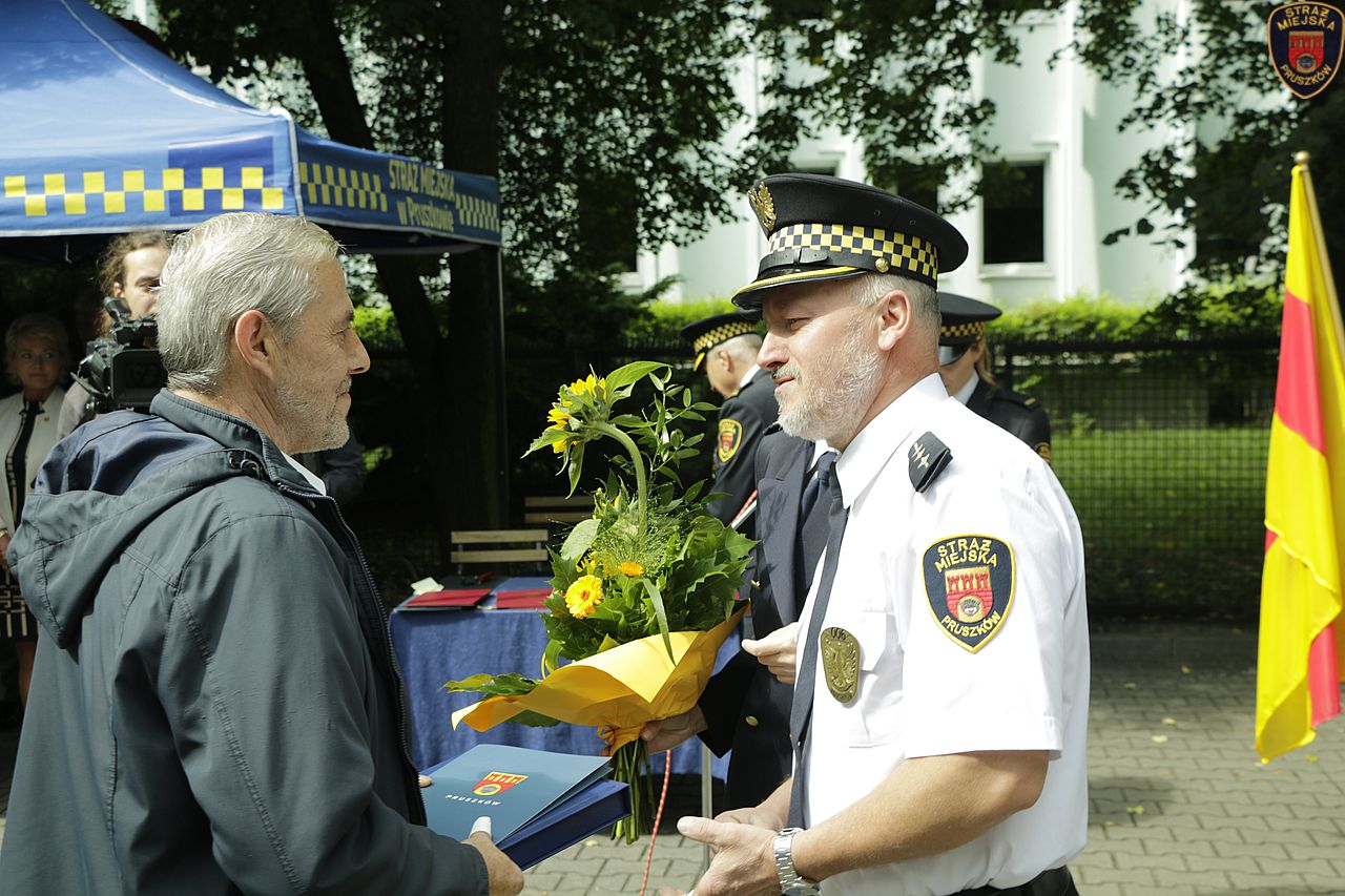 W wystąpieniu Komendant Staży Miejskiej w Pruszkowie Włodzimierz Majchrzak gorąco podziękował Władzom Miasta, Radnym Instytucjom i osobom za okazaną życzliwość, zrozumienie i przychylność dla podejmowanych przez Straż Miejską działań w służbie Miastu i jego mieszkańców. Z okazji święta Komendant wręczył dziewięciu strażnikom, którzy wykazali się w ciągu ostatniego roku szczególnymi osiągnięciami w służbie akty mianowania na wyższe stopnie służbowe, przyznał pięć nagród finansowych oraz udzielił siedem pochwał.
