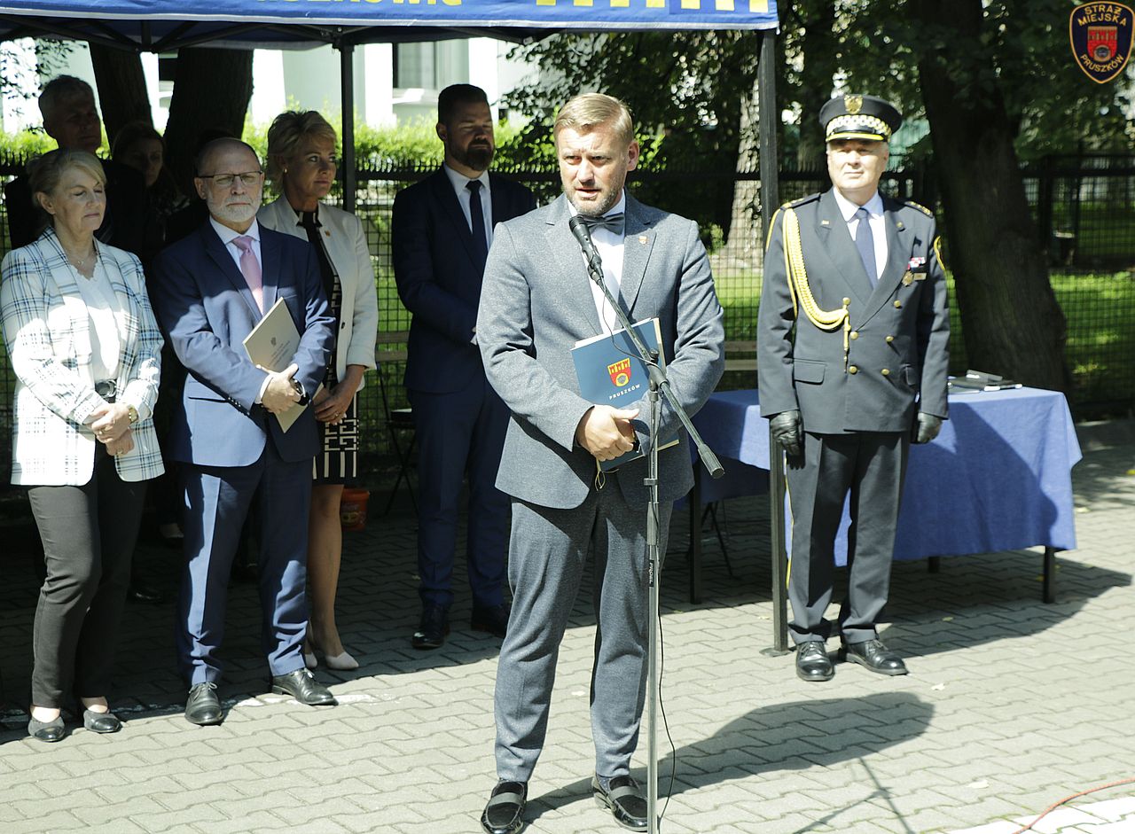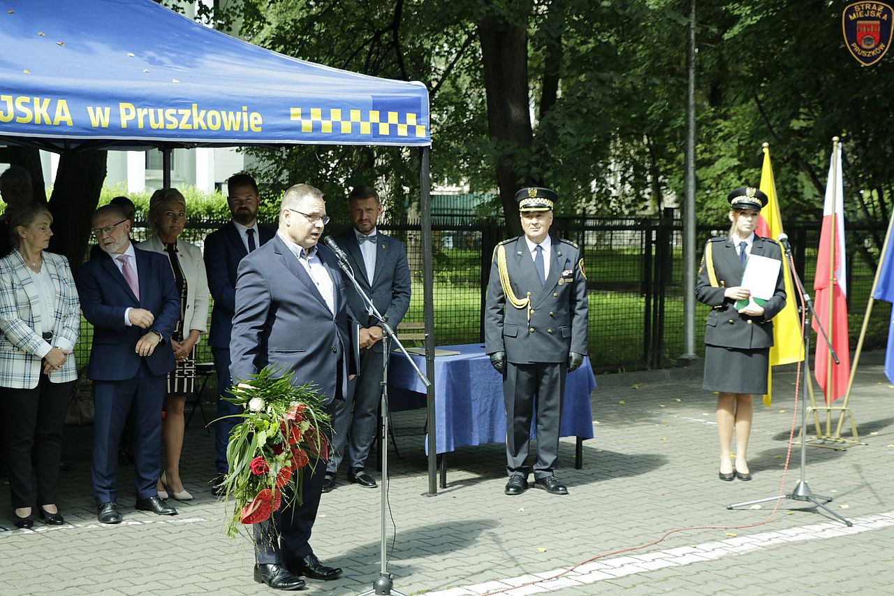 Dziękujemy wszystkim gościom za ciepłe słowa doceniające nasze wysiłki. Dziękujemy wszystkim mieszkańcom Pruszkowa za wspólne starania na rzecz bezpieczeństwa naszego Miasta. Dziękujemy Prezesowi MZO za ufundowanie pojazdu służbowego. Ciąży na nas wielka odpowiedzialność zapewnienia ładu, porządku i bezpieczeństwa. Z zadań tych będziemy wywiązywać się na najwyższym poziomie – tak, jak miało to miejsce do tej pory.