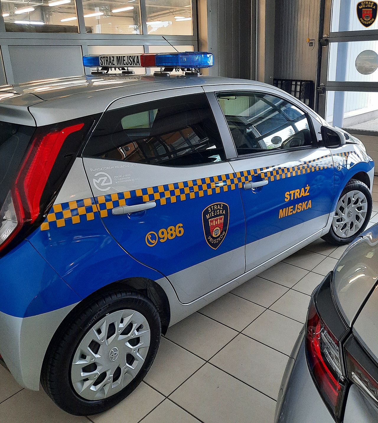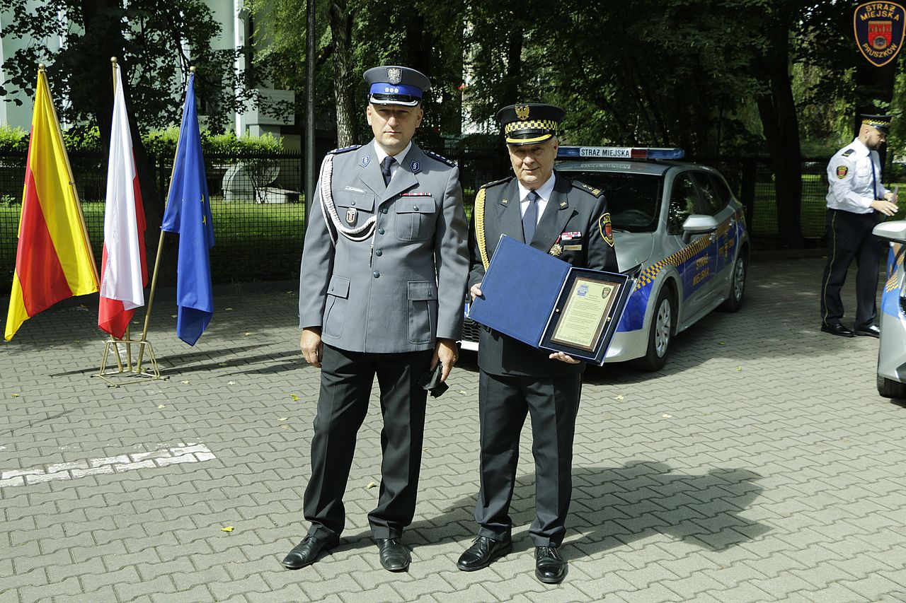 Odbyła się również prezentacja dwóch pojazdów służbowych, o które Jednostka wzbogaciła się w bieżącym roku. Jest to hybrydowa Toyota Corolla, oraz Toyota Aygo, którą ufundował i przekazał Straży Miejskiej Pan Jarosław Bałdowski Prezes Zarządu Miejskiego Zakładu Oczyszczania w Pruszkowie.