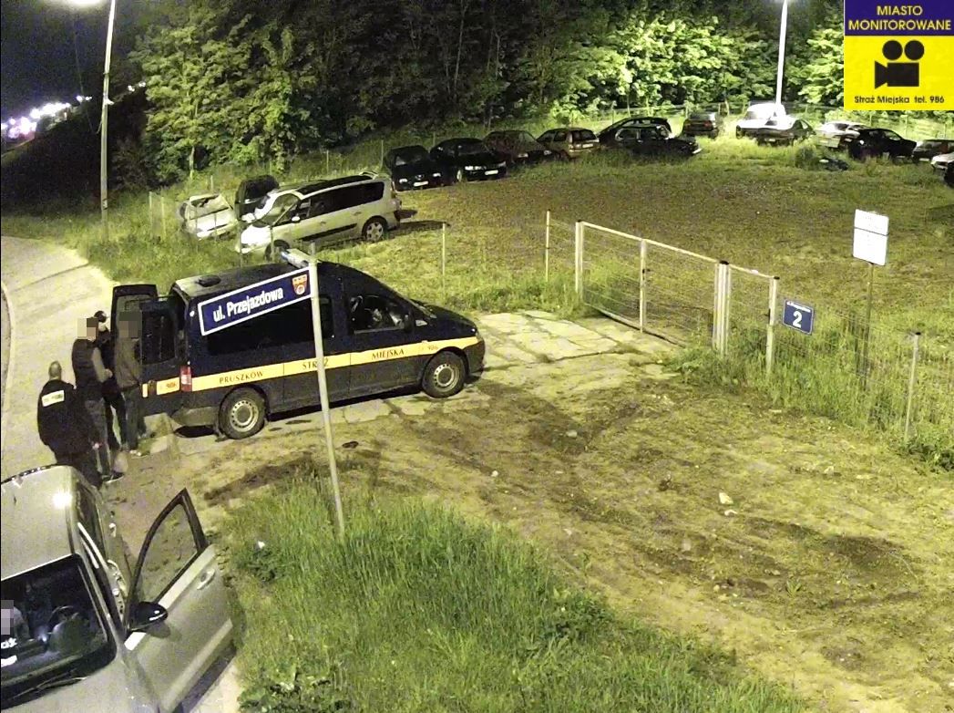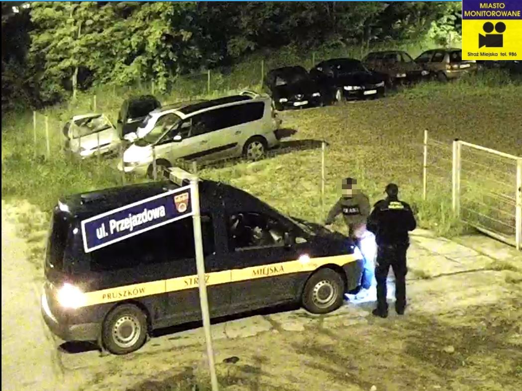 Tuż po godzinie 22, dyżurnego monitoringu, zaniepokoił fakt przebywania podejrzanie zachowujących się mężczyzn w rejonie parkingu dozorowanego, na terenie monitorowanym kamerą przy ulicy Przejazdowej, na który odholowywane są pojazdu tzw. „wraki”, usunięte z pruszkowskich ulic. Na miejsce został zadysponowany patrol interwencyjny w celu weryfikacji zgłoszenia. Kiedy strażnicy dojeżdżali na miejsce, pomimo widocznej informacji, że teren jest monitorowany przez naszą jednostkę, mężczyźni postanowili uszkodzić ogrodzenie i dostać się na teren parkingu.