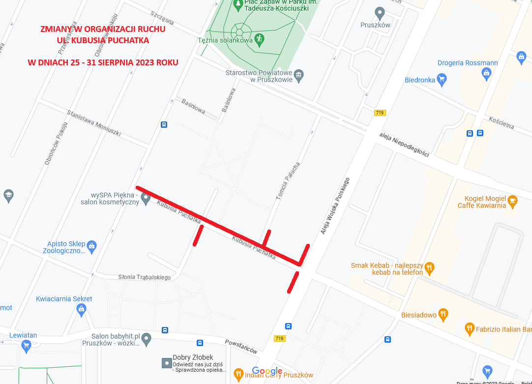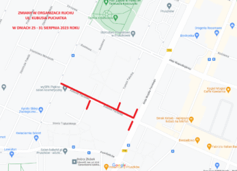 Urząd Miejski w Pruszkowie, informuje o zmianie organizacji ruchu i utrudnieniach, które mogą wystąpić od dnia 25 do dnia 31 sierpnia bieżącego roku w ul. Kubusia Puchatka. Spowodowane, to będzie dostawą, rozładunkiem i montażem ponadgabarytowych prefabrykowanych elementów budynku Szkoły Podstawowej nr 3.