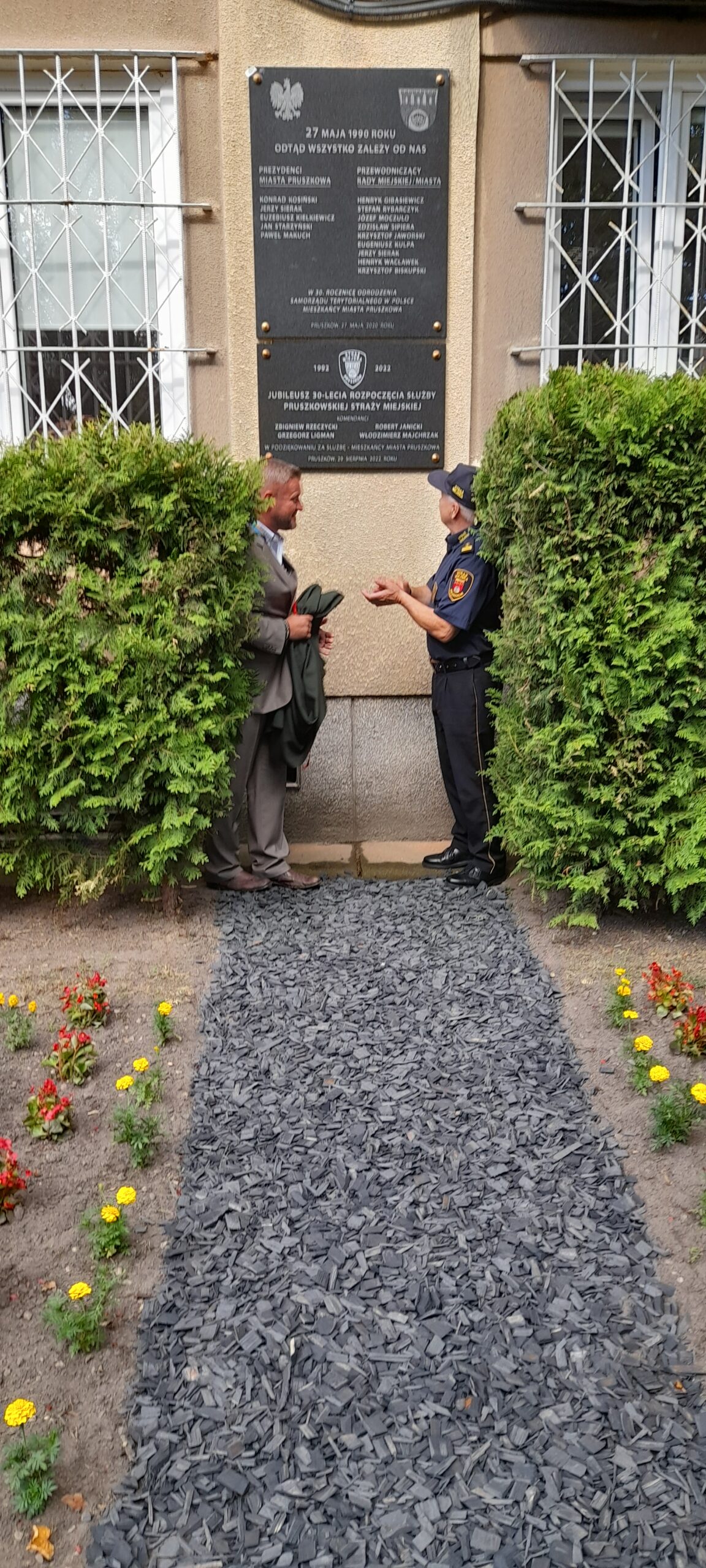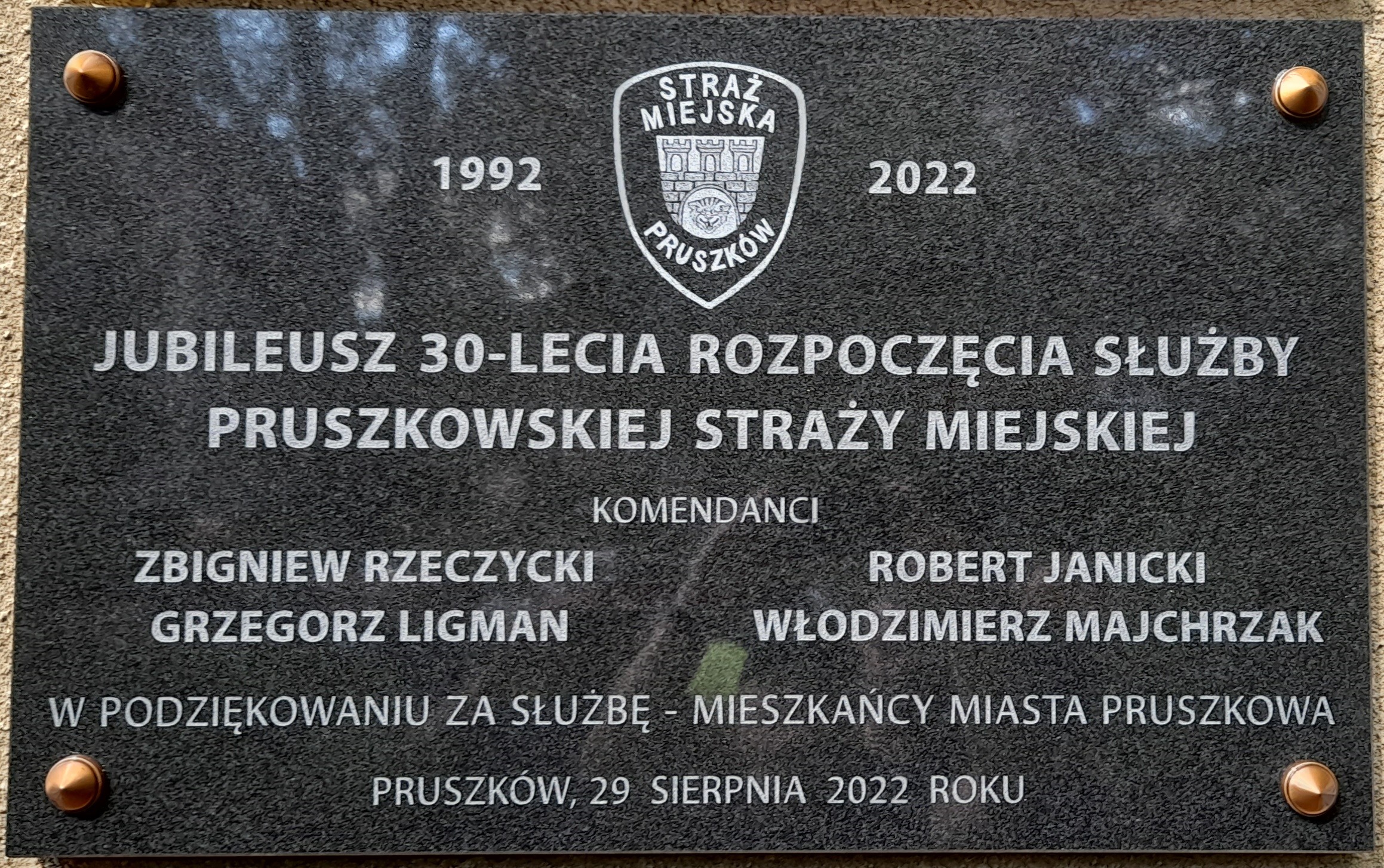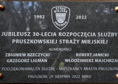 Obchody święta oraz jubileuszu, rozpoczęły się w dniu 01 września, przed budynkiem Urzędu Miejskiego, przy ulicy Kraszewskiego, gdzie Prezydent Miasta Pruszkowa Paweł Makuch wraz Zastępcą Prezydenta Konradem Sipierą, podziękowali wszystkim strażnikom za dotychczasową służbę na rzecz Miasta i jego Mieszkańców. Szczególne podziękowania, kierowane były przez władze miasta za ostatnie, szczególne i trudne dwa lata Służby w związku z zaangażowaniem naszej jednostki w realizacje zadań w okresie panującej pandemii, a także w pomoc dla samorządu pruszkowskiego w związku z napływem uchodźców wojennych z Ukrainy. Upamiętnieniem w tym dniu 30 rocznicy powołania do służby Straży Miejskiej w Pruszkowie, było w tym dniu odsłonięcie tablicy pamiątkowej na froncie budynku Urzędu Miejskiego.