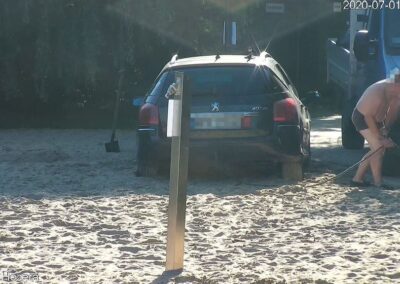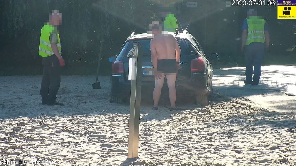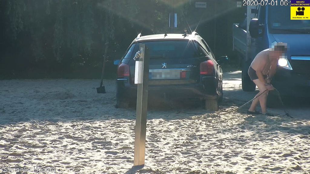 Podczas obserwacji rejonu Parku Miejskiego Mazowsze, po godzinie 7 rano, dyżurny zauważył „kierowcę” Peugeota, który próbował wyjechać z terenu plaży miejskiej, gdzie wcześniej ugrzązł. „Kierowca” o pomoc zwrócił się do pracowników, którzy porządkowali teren parku. Ze względu na wykroczenia, jakie popełnił kierowca, wjeżdżając na teren parku i plaży miejskiej, skierował tam patrol interwencyjny pruszkowskich strażników miejskich.