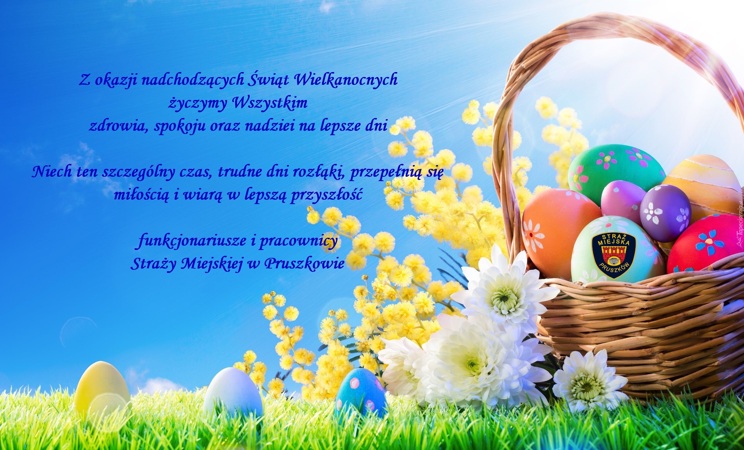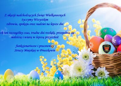 Z okazji nadchodzących Świąt Wielkanocnych życzymy Wszystkim zdrowia, spokoju oraz nadziei na lepsze dni. Niech ten szczególny czas, trudne dni rozłąki, przepełnią się miłością i wiarą w lepszą przyszłość. Funkcjonariusze i pracownicy Straży Miejskiej w Pruszkowie
